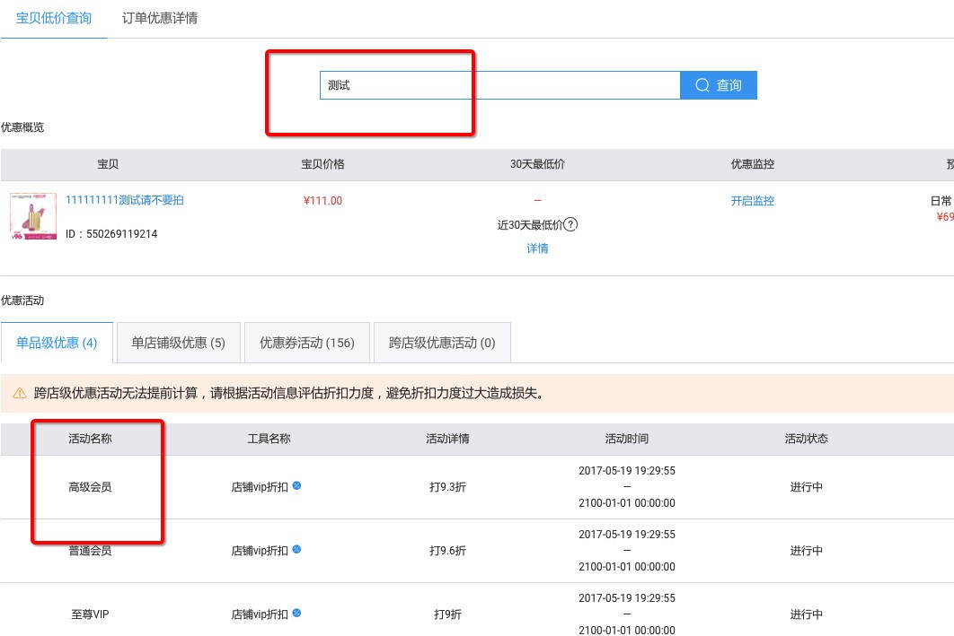 2)、如何排查我的活动是哪个工具设置的:登录优惠监控,输入宝贝id,查询该商品对应的所有活动信息即可。
