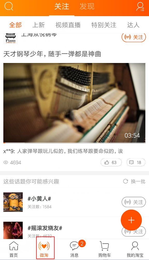 微淘是我们如今淘宝内容化运营第一平台,他显示在无线淘宝页面的下方第二子类目