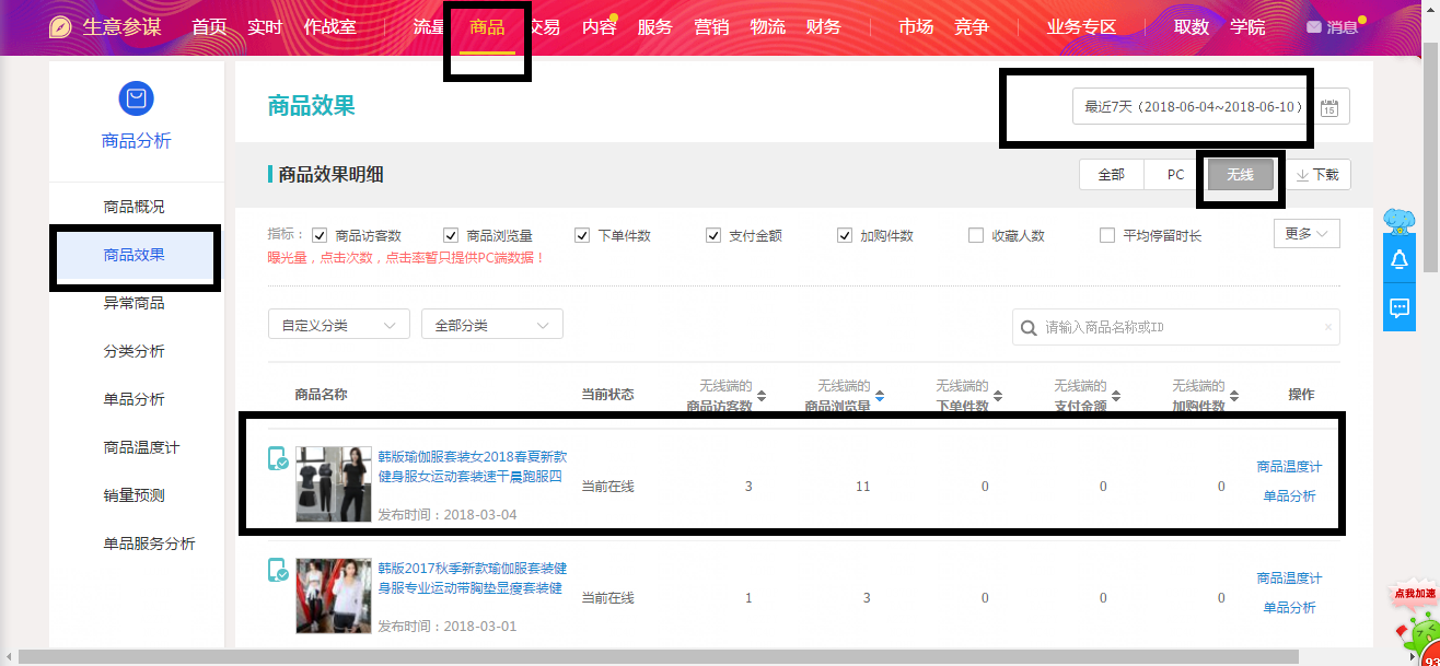 (看下这家店铺的主推款是什么?生意参谋——商品——商品效果)选择相应的商品类目!