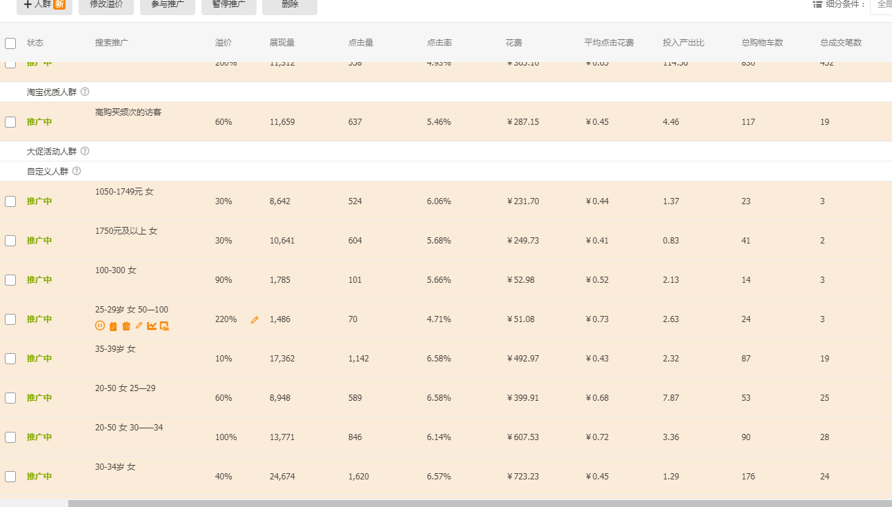 6. 自定义人群和店铺定制人群添加一级人群,每个人群溢价5%。